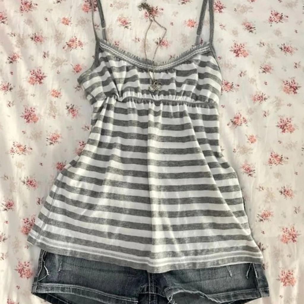 TrendHub Dámské kšandy Pruhovaný vzor Ležérní Y2K Retro Harajuku Móda Nová Street Punk Sladký Hip Hop Roztomilý Hottie Dětské Crop Topy Emo — koupit online v obchodě na marketplace Joom