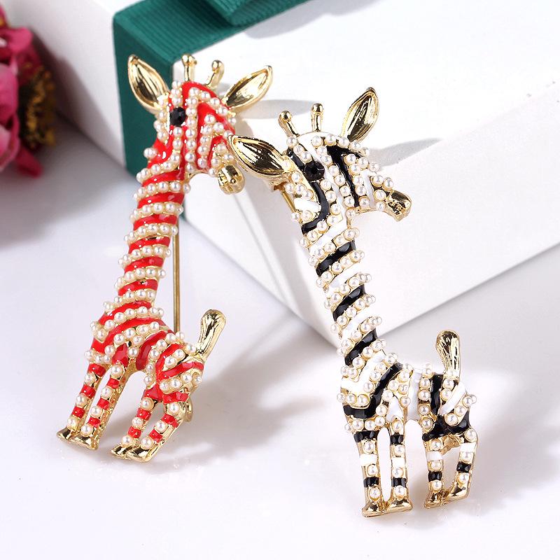 Giraffe Pearl Brooch Enamel Drop Oil Animal Design Exquisite Hypoallergenic Luxury Long-lasting Color Women's Pin Accessory — koupit online v obchodě na marketplace Joom