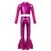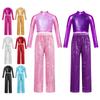 Dívčí kostým na jazzový tanec s rolákem, dlouhým rukávem, vpředu s flitry, metalický zkrácený top, zvonové lesklé kalhoty, sada — koupit online v obchodě na marketplace Joom