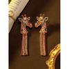 Vintage Giraffe Tassel Earrings Light Luxury Style Full Of Diamonds