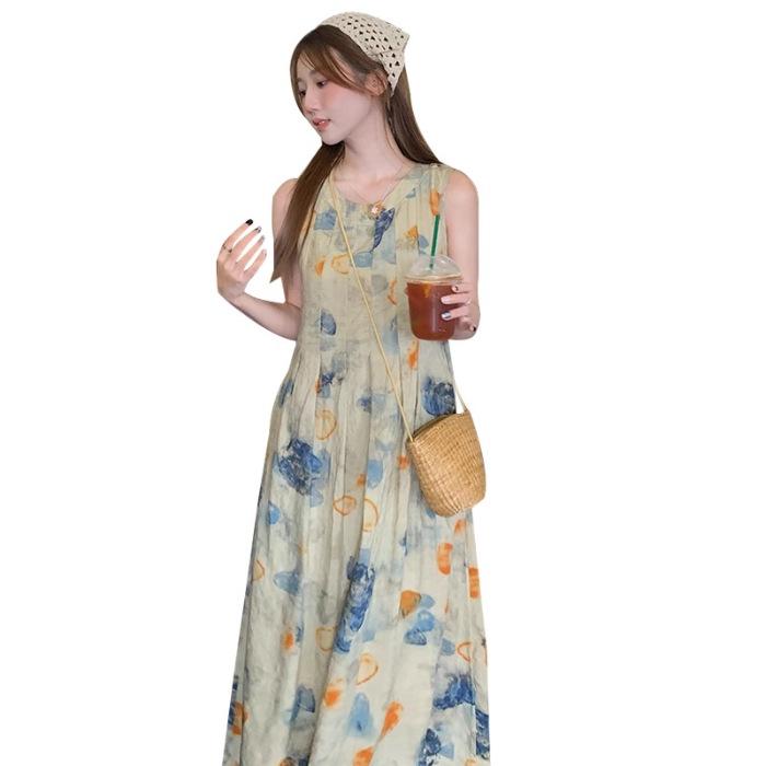 Ink Wash Painting Vest Dress - Retro Artistic Style for 2026 Spring/Summer Collection — koupit online v obchodě na marketplace Joom