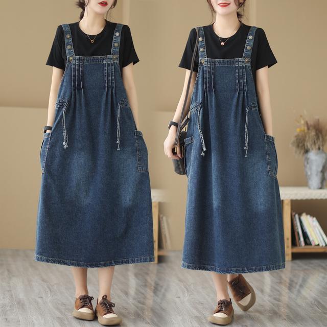 This stylish mid-length sleeveless dress is designed specifically for curvy women who want to embrace the autumn season with confidence. Crafted from high-quality nylon, it features a denim look with practical suspenders, adding a touch of casual elegance to any outfit. The knitted fabric detailing provides added warmth and comfort, making it perfect for layering as temperatures drop. Whether paired with a cozy sweater or a chic blouse, this versatile skirt is a must-have addition to your fall wardrobe.