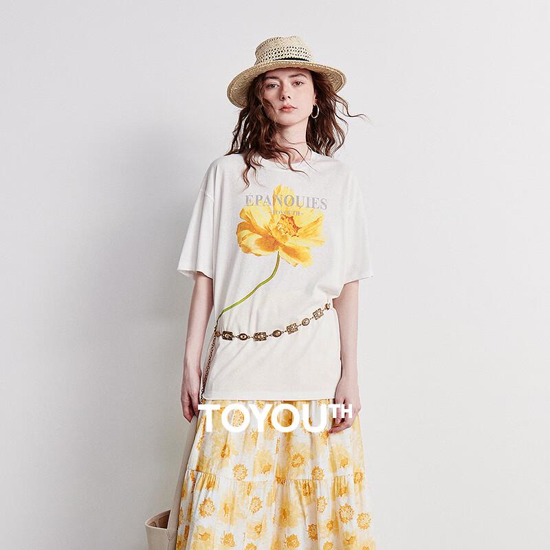 Chuyu Women's Oil Painting Print Loose T-shirt