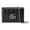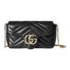 Gucci GG Marmont Black Leather Chevron Quilted Mini Chain Crossbody Bag For Women Daily Use