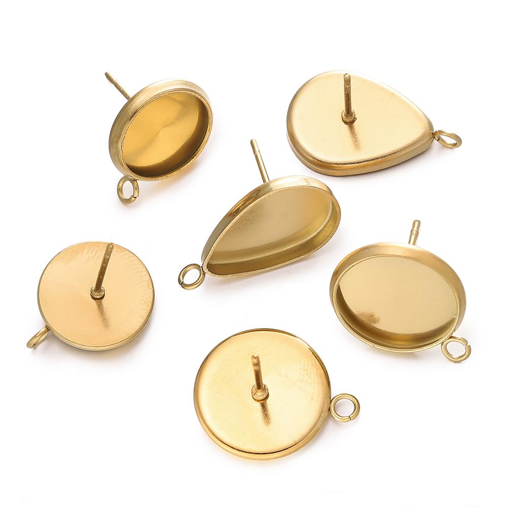 10pcs/lot Stainless Steel Drop/Round Flat Stud Earring Setting Blank Earring Base Resin Cabochon Tray for DIY Jewelry Making — koupit online v obchodě na marketplace Joom