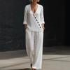 Dámská barevná temperamentní volná košile s knoflíky a výstřihem do V široké kalhoty dvoudílná sada — koupit online v obchodě na marketplace Joom