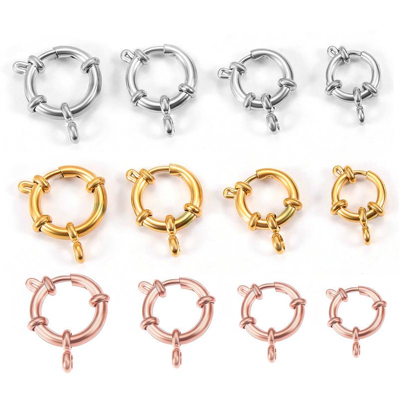 4pcs 316L Stainless Steel Round Spring Clasps Gold Color Hooks for Bracelet Clavicle Necklace Clasp Connector Jewelry Making DIY