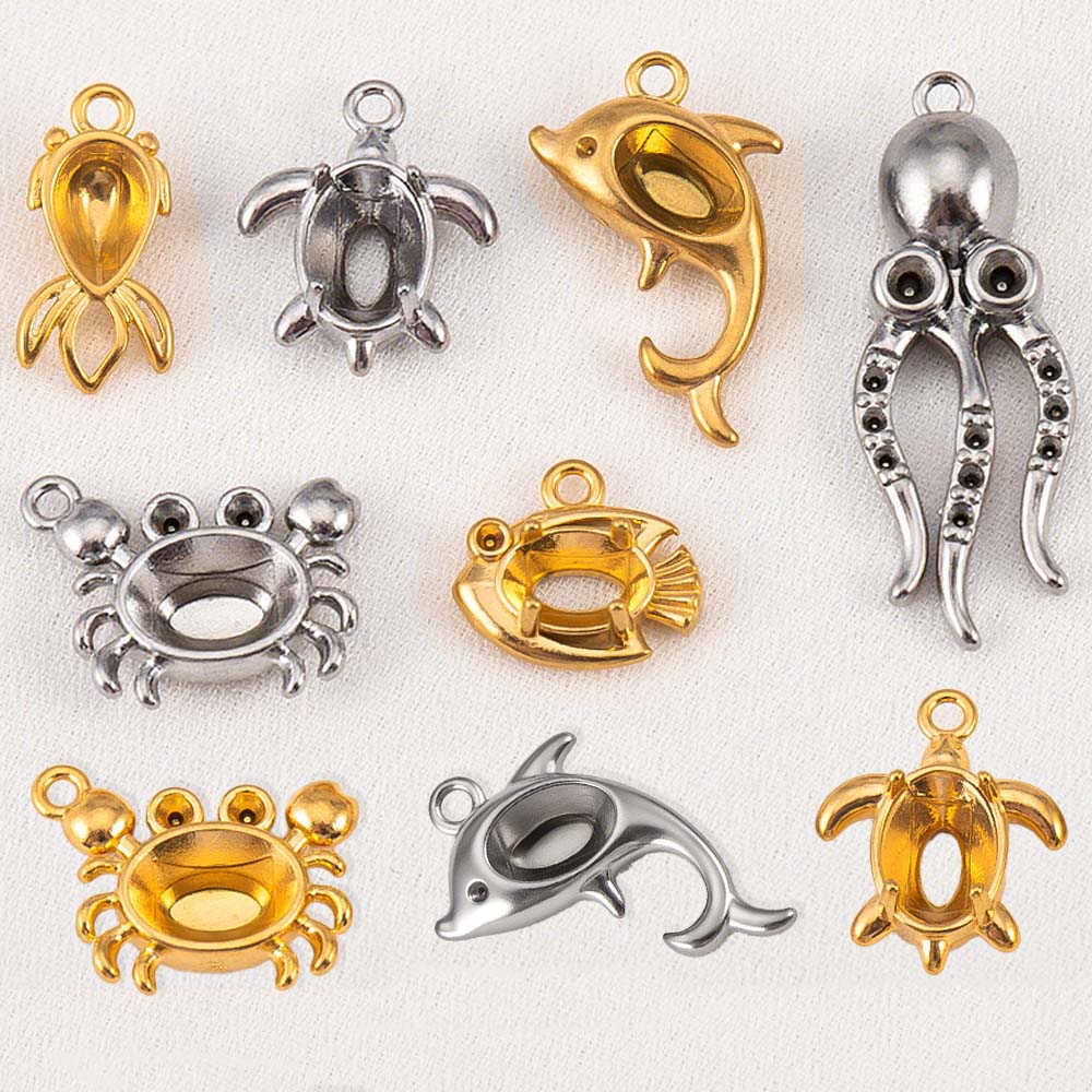 1pc 5pcs 8pcs Stainless Steel Fish Dolphin Turtle Octopus Crab Pendant Base Frames Blank Bezel DIY Necklace Charm Jewelry Making