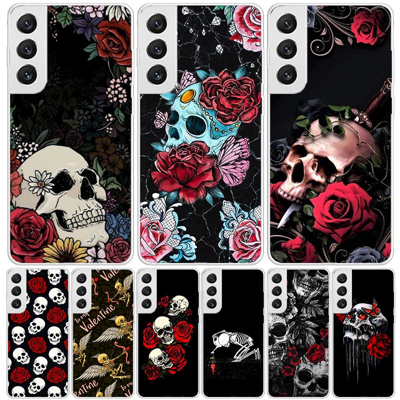 Human Skeleton Red Rose Phone Case For Samsung Galaxy S25 S24 S23 S22 S21 FE S20 Ultra S10 Plus Art Customized Coque Capa S24 S2