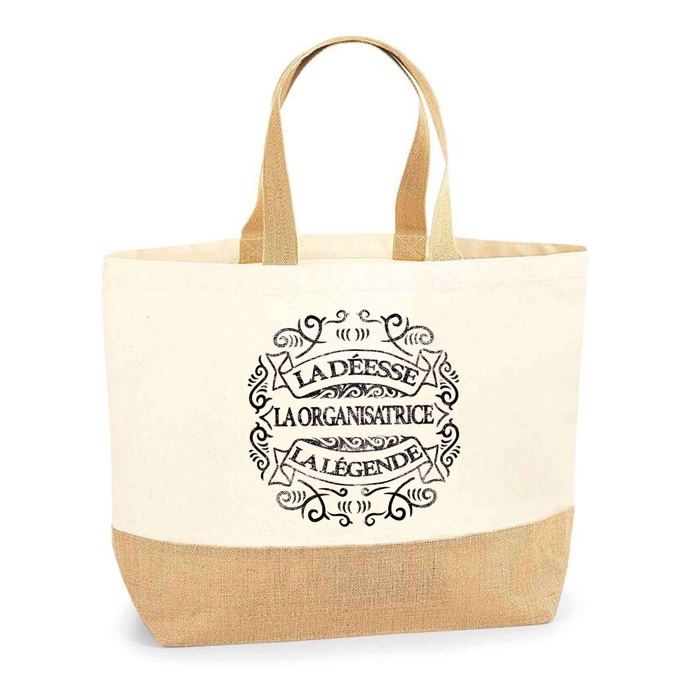 Sac Jute organisatrice Déesse Légende Cadeau Humour - Anniversaire | Cabas de Plage Courses Coton et Toile de Jute Idée Cadeau Femme