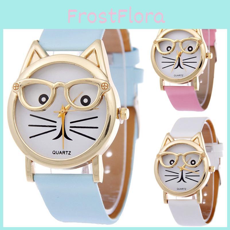 Rozkošné Kočičí Tvář Dámské Křemenné Hodinky S Koženým Řemínkem Kreslený Design — koupit online v obchodě na marketplace Joom
