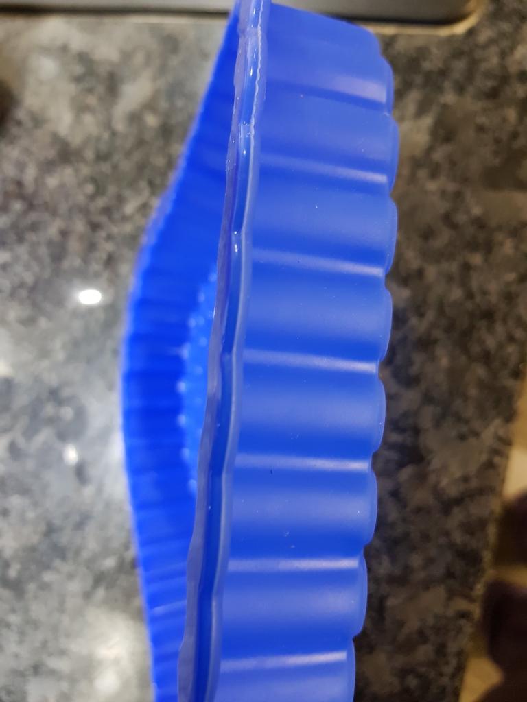 Recht zügige Lieferung von 17 Tagen. Form ist stabil, kein strenger Geruch, riecht nur minimal nach "neu". Sie ist kleiner als erwartet, ich denke sie passt für ein halbes Kuchenrezept. Das ist mir aber ganz recht, weil ich lieber 2-3 verschiedene, kleine Kuchen mache, als einen großen. Werde mir hier auf jeden Fall noch weitere Formen bestellen.