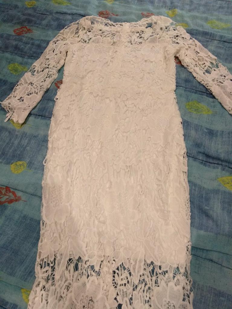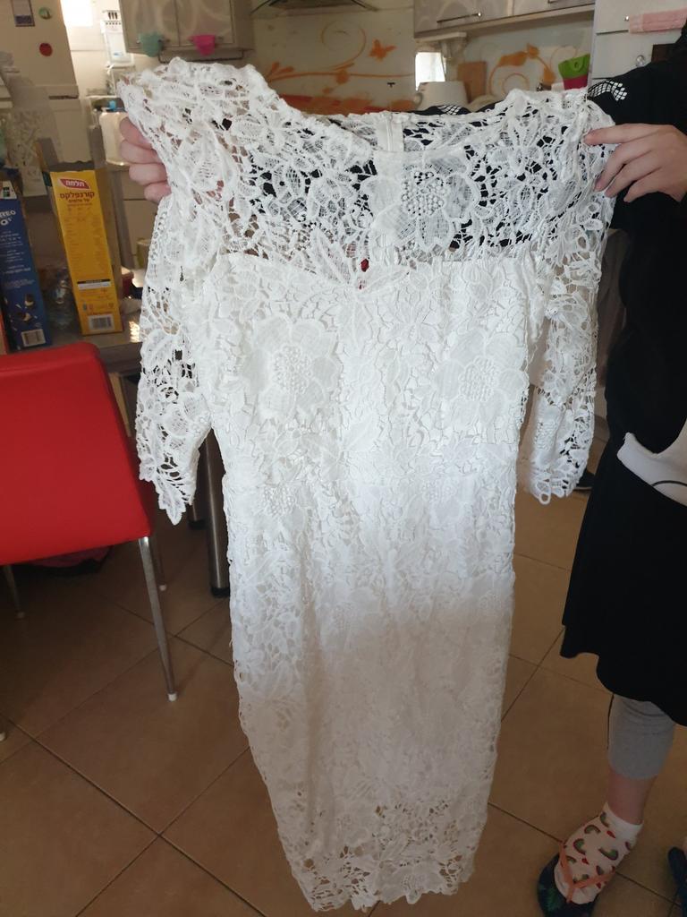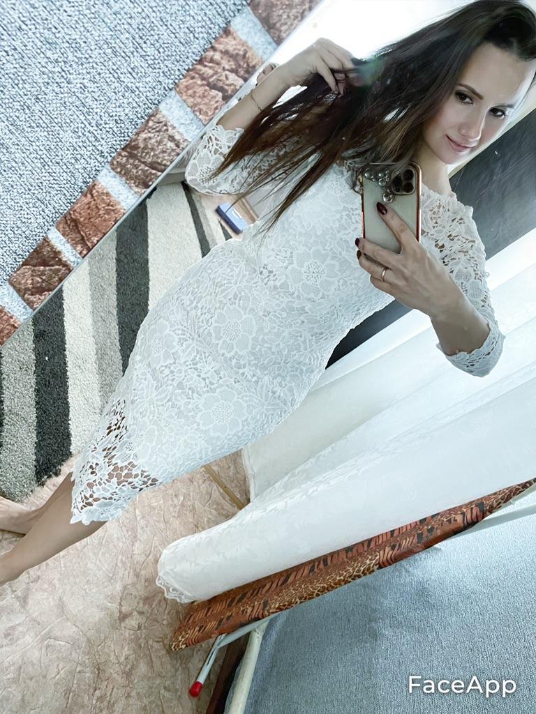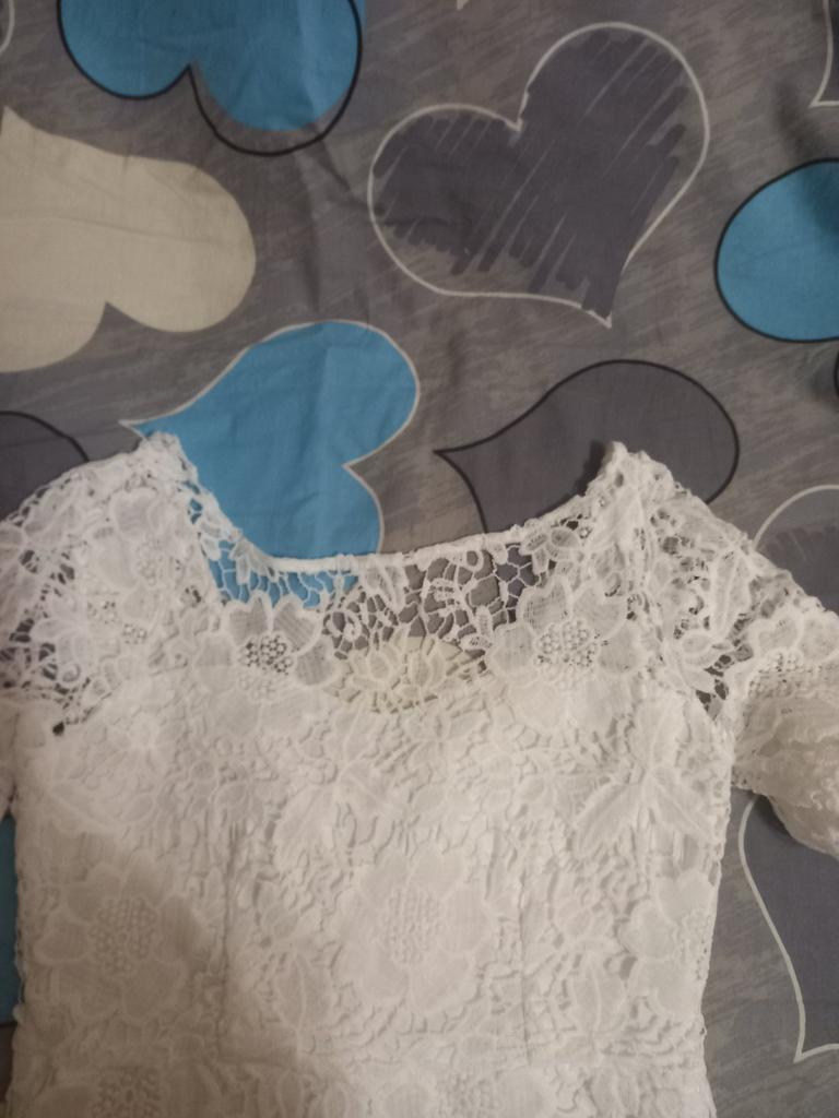 Das Kleid ist wunderschön, ich habe XXL genommen, weil ich 75 kg wiege, ich bin ziemlich klein, das Kleid geht mir bis zu den Knien. Es umarmt mich nicht, ich gehe.