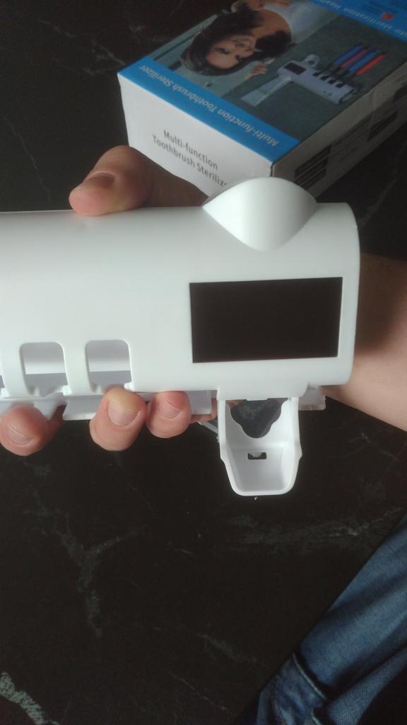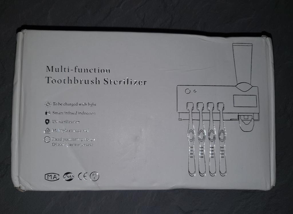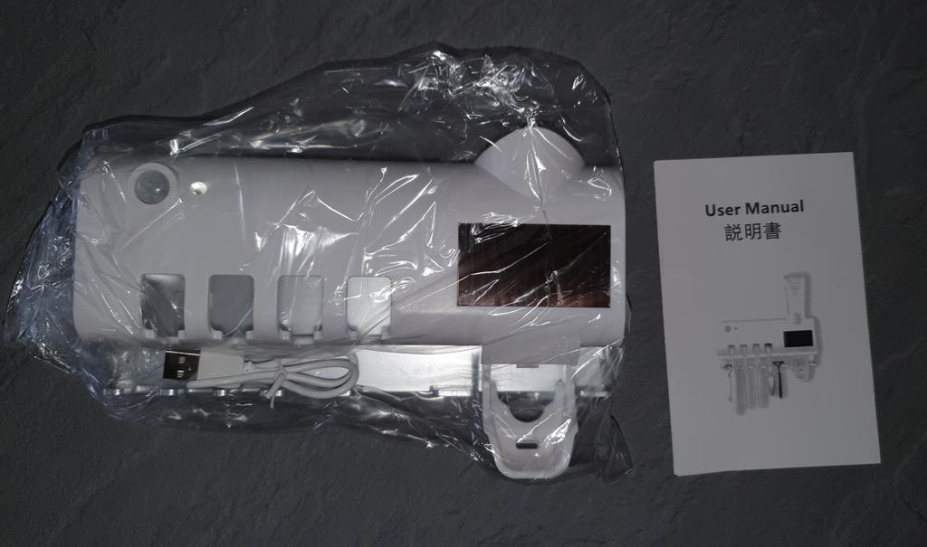 Im eigenen Karton geliefert bekommen. Zuerst das Gerät laden! Vorher die Halterung an einer sauberen Wand ankleben und für paar Stunden kleben lassen. Bis es fest klebt! Ich habe nach ca. 10 Stunden dann das aufgeladen Gerät an die Halterung aufgehangen! Seitlich ist ein Schalter, den anmachen (einmal drauf drucken). Dann die Zahnbürsten und die Zahnpasta reingestellt. Bei der Zahnpasta, passen nur die schmalen Köpfe rein! Natürlich ohne Deckel! Man muss auch den Kopf oder die Öffnung der Zahnpasta reinstecken! Da muss die Ganze Halterung abgenommen werden! Erst wenn das drin steckt nach mehrmaliger Hebel drücken kommt die Paste raus! Das Gerät hat sozusagen einen Bewegungsmelder! Sobald man im Raum ist leuchtet nur das normale Licht. Wenn man raus geht geht nach paar Sekunden das UV Licht an! Es hat auch Solarzellen drauf, mal sehen ob dadurch das Gerät lange Akku hat… Also bis jetzt hält der Kleber! Und mal sehen wie lange wir es nutzen können. Würde hier nochmal reinschreiben.