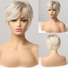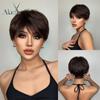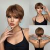ALAN EATON Pixie Cut kurze gerade Kunsthaarperücken für schwarze Frauen Afro Puffy Natural Brown Blonde Highlight Perücke mit Pony — günstig online bei Joom kaufen