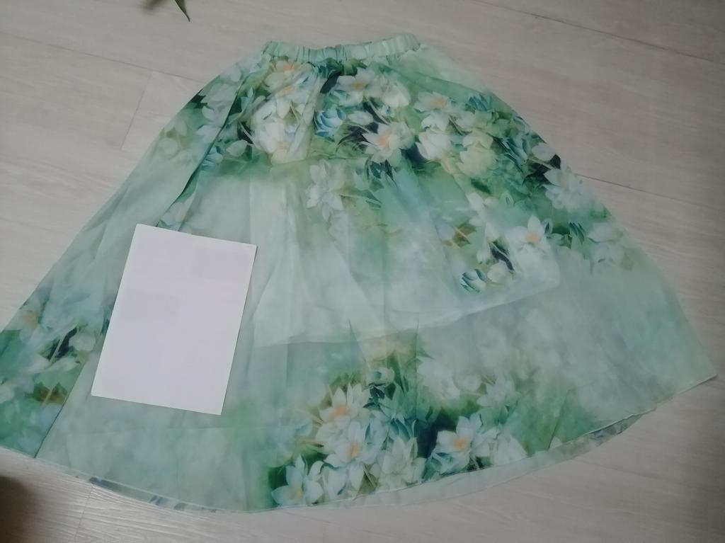 Der Rock ist gut, nicht so voluminös wie auf dem Foto, aber schön. 3 Nähte an den Seiten und hinten. Das Muster vorne ist durchgehend, hinten ist es nicht nahtlos verbunden, die Naht ist in der Mitte.