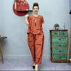 Sommer frauen Hosen Anzug Pastoralen Mode Lose Kurzarm Zwei Stück Anzug Gestreiften Baumwolle Leinen Wilden T-shirt Hose Sets