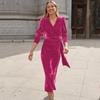 Frauen Langarm Haute V-ausschnitt Französisch Design Rock Elegante Party Abendkleid Formelle Anlässe Mode Solide Farbige Kleider