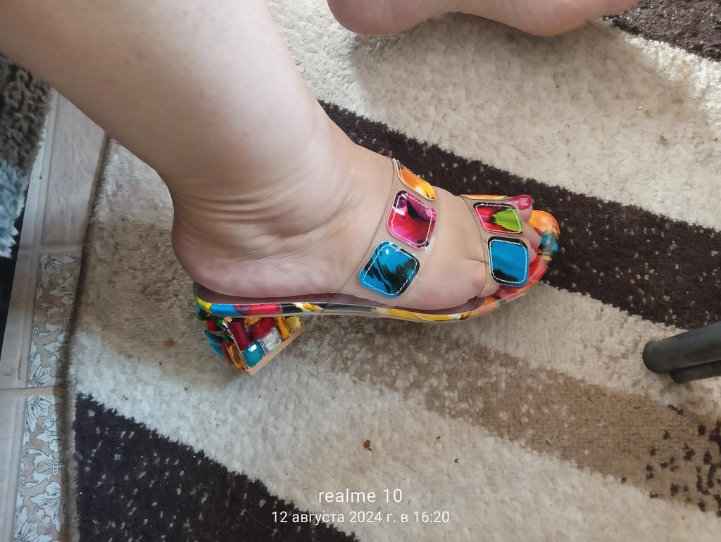 Für einen Ausflug ans Meer habe ich eine Nummer größer genommen, da meine Beine bei der Hitze anschwellen könnten Sehr hübsch Die Ferse ist stabil, durch die Silikonriemen rutscht der Fuß nicht und das Gehen ist angenehm