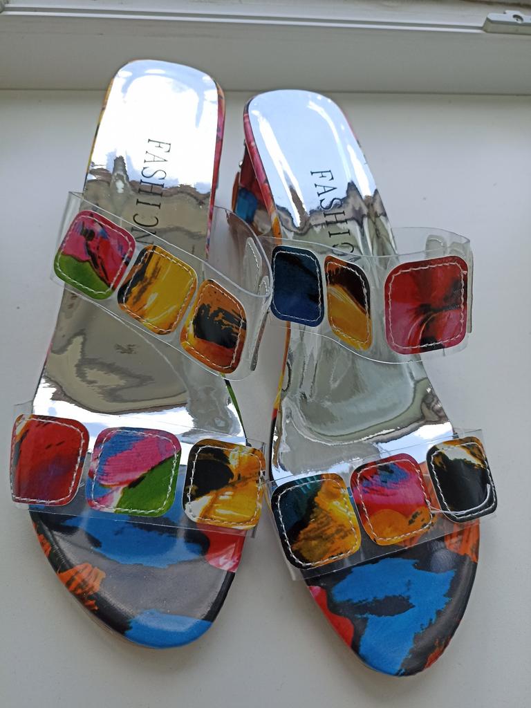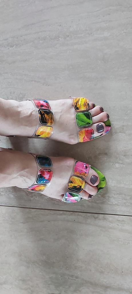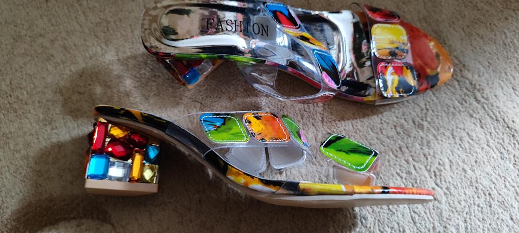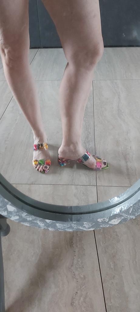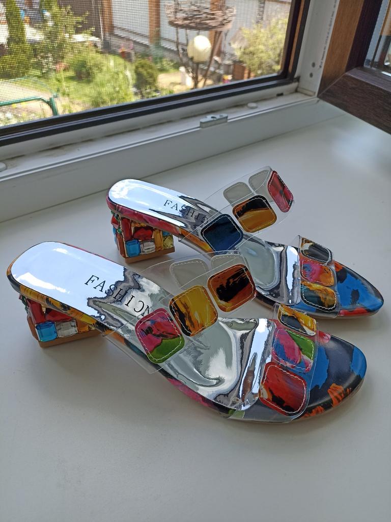 Sandalen für den Sommer und drinnen, es ist schwer, Schuhe auszuwählen, ich habe 39,5, ich habe 41 bestellt, sie sind etwas groß, es hätte 40 sein können, aber ansonsten sind sie fröhlich und hell