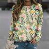 Damen Casual Fashion Print Langarm O-Ausschnitt Pullover Top Bluse