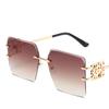 Damenbrille Sonnenschutz UV-Schutz Mode Persönlichkeit Retro Künstlerische Straßenaufnahme Konkave Form Reise Chinesischer Knoten Randlose Sonnenbrille