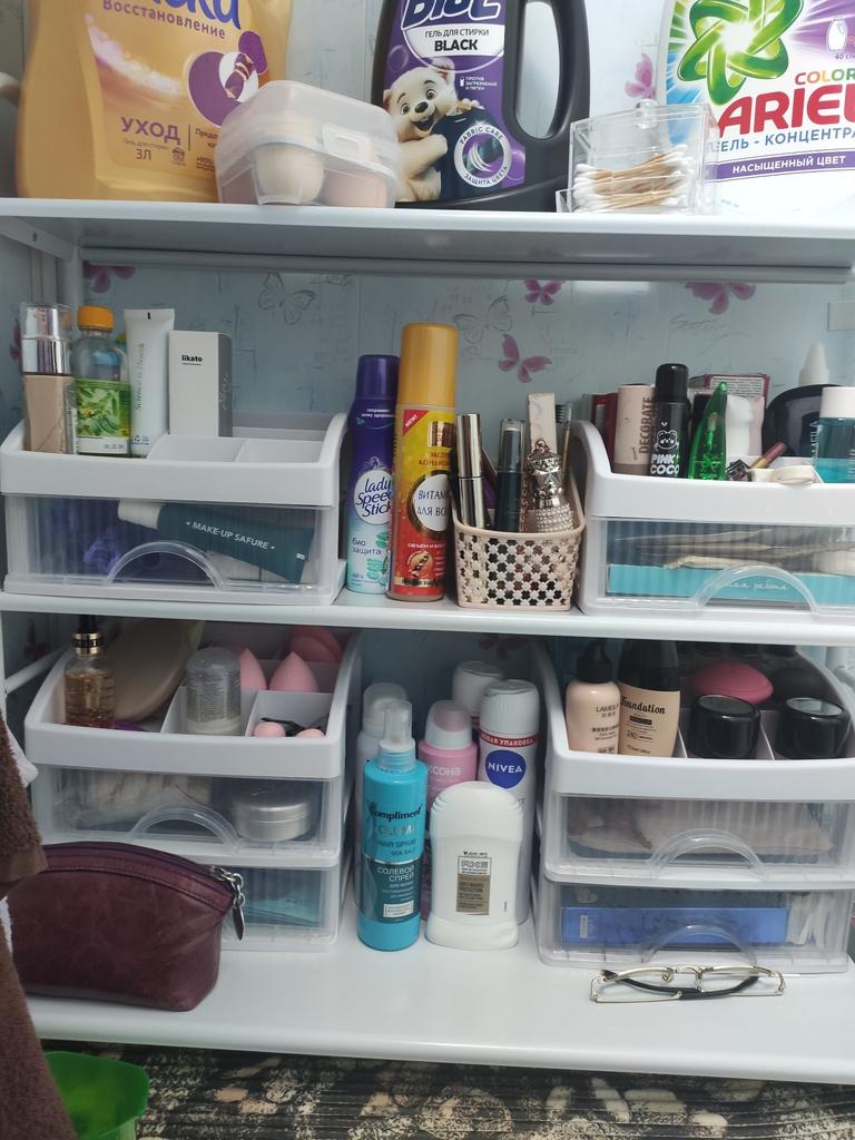 Sehr praktischer Organizer. Alles, was im Regal war, ist jetzt verstaut, alles ist ordentlich und sehr bequem. Danke.