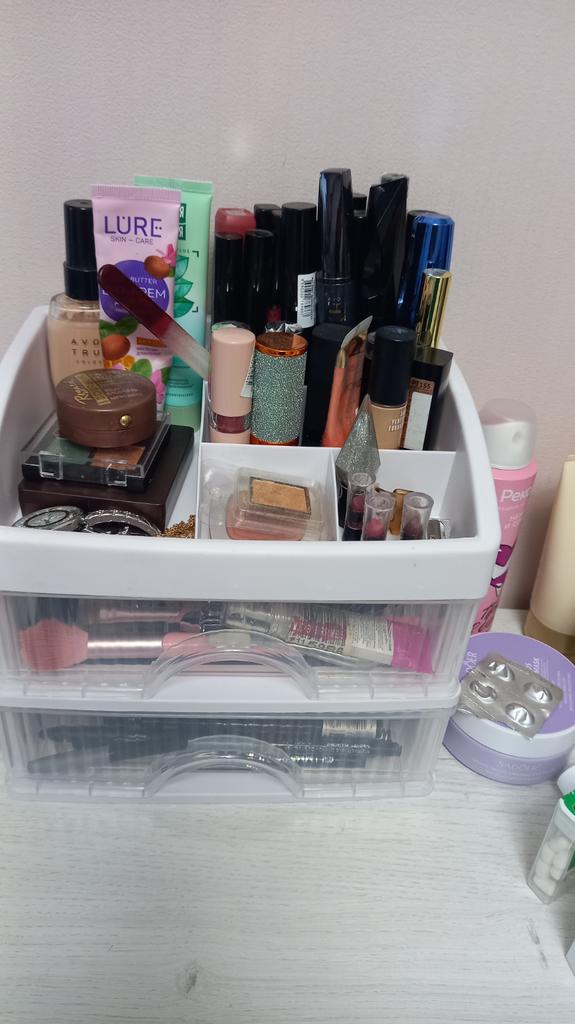 Netter kleiner Organizer, schade, dass es ihn nicht in Schwarz gibt, aber das ist nicht wichtig. Alle meine Kosmetika passen hinein, sehr praktische Fächer
