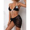 2022 Sexy 3 Piece Bikinis Suit Halter Moon Mesh Swimwear Women Beachwear Wave Point Swimsuit Female Beach Skirt Black Bikini Set