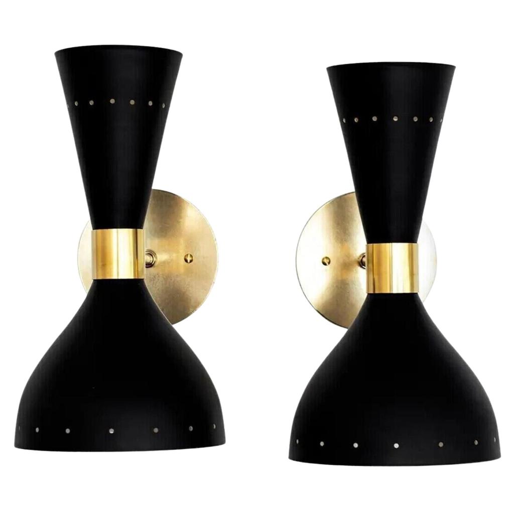 1950 Wandleuchte Diabolo Paar moderner schwarzer Wandleuchten im Stil Stilnovo