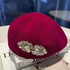 WTEMPO Herbst Winter Retro Strass Baretts Hüte Damen Elegant Lässig Vielseitig Einfarbig Warm Schirmmützen