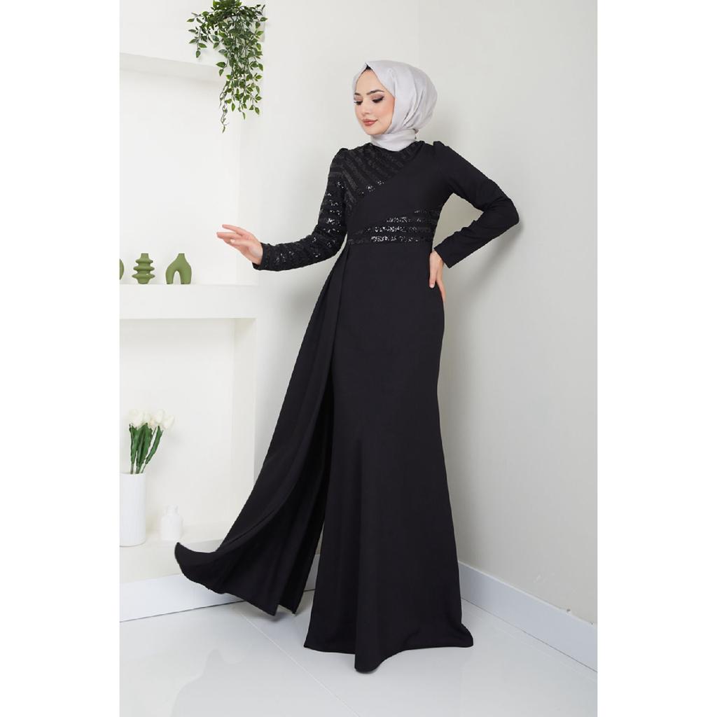 Damenbekleidung Abendkleid Mode Pailletten Cape Hijab Fisch Abendkleid 2711 Schwarz