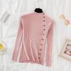 Einfarbiger Pullover mit halbhohem Kragen, langärmelig, schmal geschnittener Pullover mit Knöpfen für Damen, vielseitiger Strickpullover, Basishemdoberteil