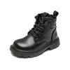 Kinder 1 Mädchen Schwarze Lederstiefel Mädchen Einzelstiefel Jungen Kurze Stiefel Herbst und Winter Samt Baumwollstiefel Tide