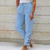 Frauen Sommer Elastische Taille Tasche Tasche Einfarbig Baumwolle Leinen Breite Bein Hosen Lose Neun Punkte Hosen