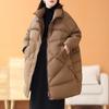 Large size medium and long down jacket for women's 2024 winter thickened retro fungus edge warm loose stand-up jacket