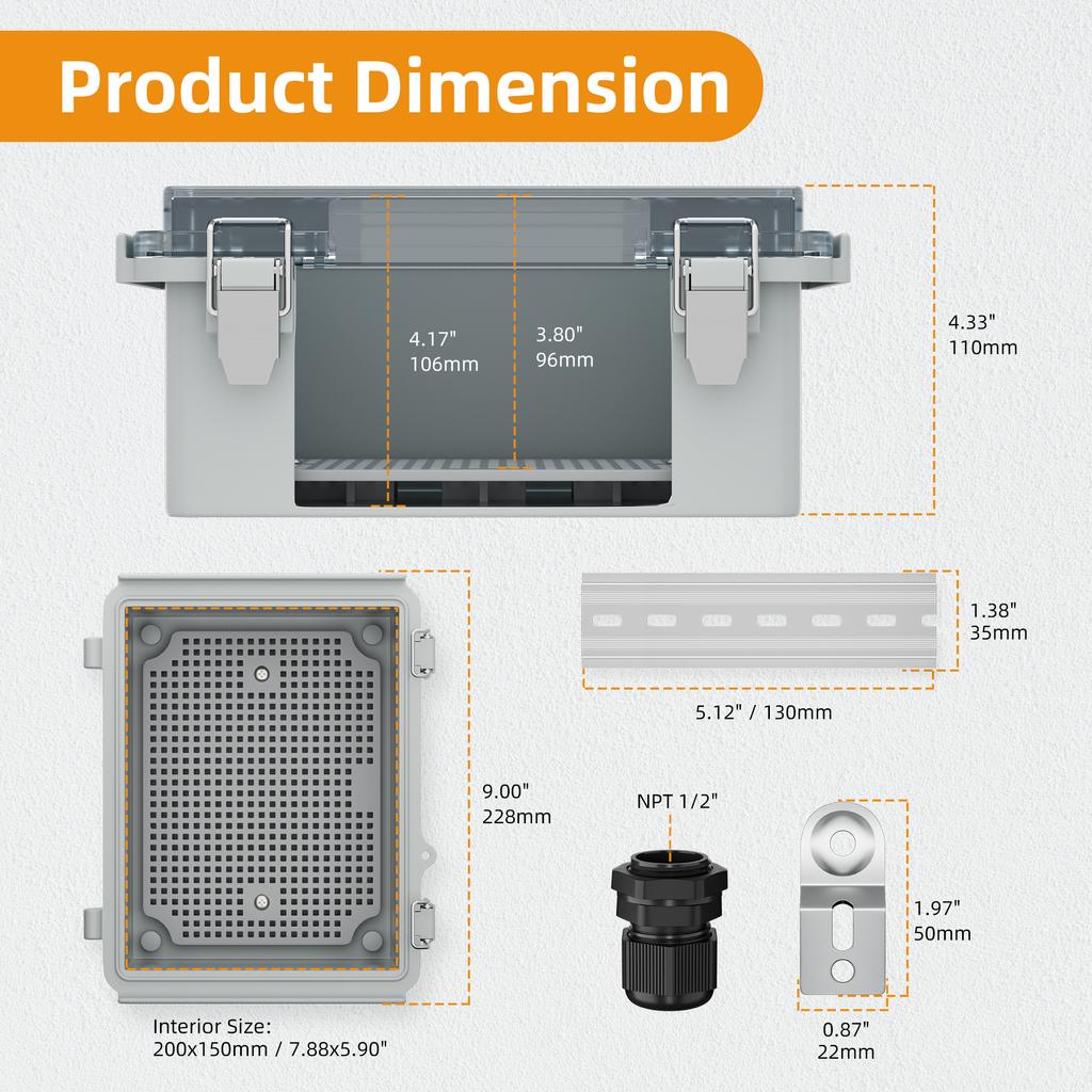 DaierTek Outdoor WiFi Enclosure Weatherproof Locking Outdoor WiFi Box Plastic Waterproof Switch Router Enclosure Box 8.7x6.7x4.3