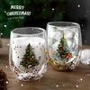 Weihnachts-Doppelwand-Glasbecher, hitzebeständig, Wasserbecher, Weihnachtsbaum, Schneemann-Muster, Saft, Tee, Milch, Kaffeebecher, Weihnachtsgeschenk