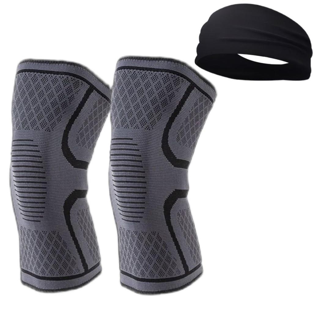Kniebandage 2er Set, Haarband für die Knie zur Vorbeugung von Sportverletzungen, atmungsaktiv, dehnbar, zum Laufen, Unisex, schwarz, verstellbarer Druckgürtel für den Sport