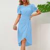Damen Karriere Kleider Sommer Rundhals Bubble Sleeve Slim Temperament Dresse — günstig online bei Joom kaufen