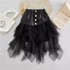 Halblanger Rock für Mädchen, Frühlings- und Herbstmode, koreanischer Mesh-Rock für Kinder, PU-Lederrock für Mädchen