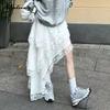 Koreanischer Stil Damen Streetwear Unregelmäßiger Rock Elastischer Bund Weiß Schwarz Lagenrock mit Rüschen Stilvoll Feminin Damenröcke Damen