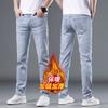Fleece-lined Thick Jeans Men's Straight Loose Youth Plus Size All-Matching Slim Fit Casual Men's Fall/Winter Pure Black Men's Pants