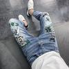 Schmale Jeans im koreanischen Stil mit europäischer Mode und Bären-Print für Herren