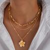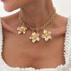 Accessories ins Vacation Style Flower Pendant Necklace, Vintage Versatile Geometric Spice Girl Collarbone Necklace Women