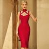 Sexy ärmelloses Stehkragen Wickel-Midikleid