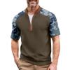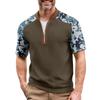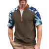 Herren Sommer Camouflage Farbe Lässiges T-Shirt Sport Atmungsaktiv Reißverschlusskragen Top