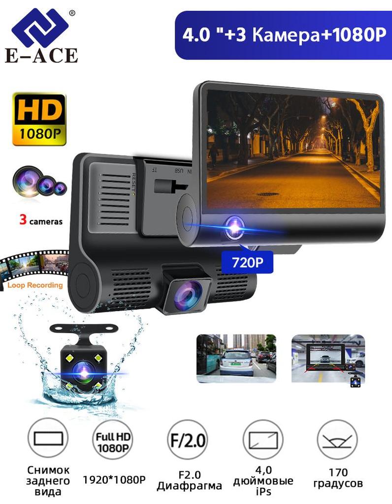 E-ACE Auto DVR 1080P 3 Kamera Objektiv DVR Dash Cam 170 Weitwinkel G-Sensor Auto Rückfahr Recorder unterstützt Nachtsicht — günstig online bei Joom kaufen