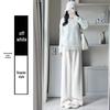 Petite Chenille Wide-Leg Fleece-Lined High-Waist Knitted Pants for Women - Autumn/Winter Wheat Ear Pattern