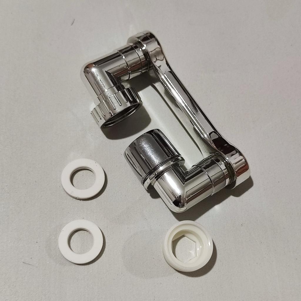 Belüfter für Mischbatterie mit universeller Drehung um 1440°. Dies ist ein Belüfteraufsatz, der an den Wasserhahn montiert wird, um den Wasserfluss zu regulieren und ihn mit Luft anzureichern, was hilft, den Wasserverbrauch zu senken.. Die universelle 1440°-Drehung ermöglicht es, den Wasserstrahl leicht in die gewünschte Richtung zu lenken, was praktisch zum Waschen des Spülbeckens oder Geschirrs ist. Solche Belüfter haben oft mehrere Wasserdurchflussmodi, zum Beispiel einen normalen Strahl und einen Sprühmodus.. Sie eignen sich sowohl für Küchen- als auch für Badarmaturen..